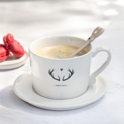 Indítsd a napod egy kis örömmel! A Bastion Collections porcelán teásbögréje nemcsak a kedvenc forró italod tökéletes társává válik, de a rajta található bájos agancsos motívum és az apró szív szimbólum garantáltan mosolyt csal az arcodra.