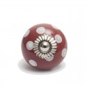 Isabelle Rose Bútorfogantyú Porcelán Spot red - Klasszikus, piros alapon fehér pöttyös porcelán bútorgomb - bútoraid felújításához!