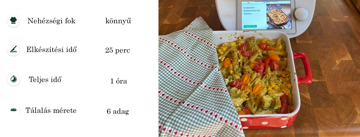 7.Hagyjuk a gratinált tésztát 10 percig pihenni, majd bazsalikomlevelekkel díszítve tálaljuk.