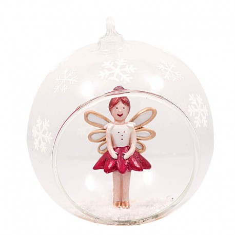 Lépj be a karácsony mesés világába ezzel a különleges GreenGate „Ballerina Gold Inside Decor” díszgömbbel! A gömb belsejében egy kecses, aranyszárnyú balerina áll piros szoknyában, mintha épp egy ünnepi táncra készülne. A hófehér hópehelymintás, áttetsző üveggömb belsejében finom műhó teszi még varázslatosabbá az összhatást.