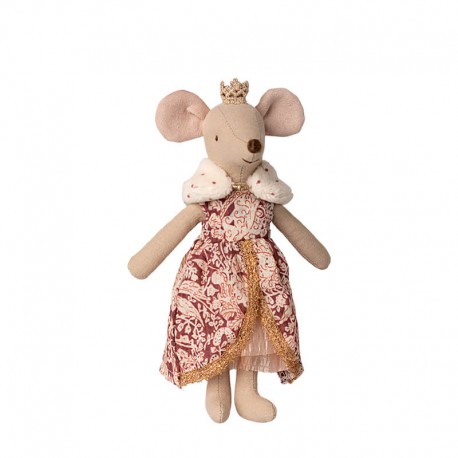 A Maileg világ uralkodónője megérkezett! Ez az elegáns királynő egér finoman kidolgozott, gazdag mintázatú ruhát visel, amit aranyszínű díszítés és királyi prém tesz még különlegesebbé. Fején természetesen egy arany korona díszeleg, jelezve méltóságát. Anya méretű, így tökéletesen illik a Maileg kastélyba és más családi jelenetekbe is.