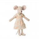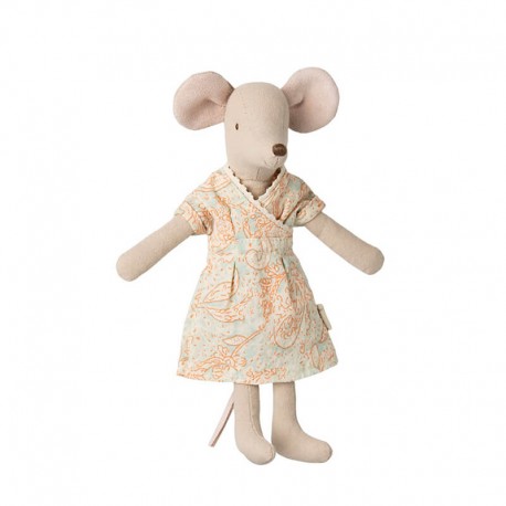 A Maileg egér család imádnivaló tagja, az egér anyuka, aki mindig elegáns és kész arra, hogy elkísérje gyermekét a képzelet világába. Ez az aranyos textil Maileg anyuka egy csinos, mintás nyári ruhát visel a meleg nyári napon.
