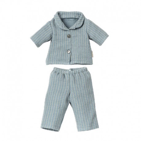 Maileg Pizsama Teddy dad- Világoskék-krém színű, csíkos pizsama Teddy apa maci számára.