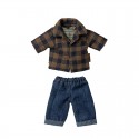 Maileg Egér Apa kockás kabátban - Barna kockás kabátba és kék farmernadrágba öltözött világosbarna egér apa.
