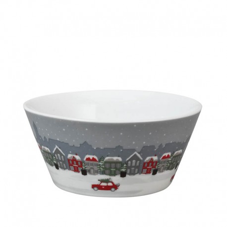 A Driving in the city nevet viselő müzlis tálat varázslatos karácsonyi minta díszíti. A téli tájban havas háztetős házak sorakoznak. Az utcán egy fenyőfát szállító piros autó indul épp haza a karácsonyi ünnepekre. A gyönyörű színek és az inspiráló grafika kombinációja egy olyan pozitív üzenetet közvetít, és arra ösztönöz, hogy mosolyogva kezdjük a napot. A tál térfogata 400 ml, így tökéletes választás lesz teának és kávénak is egyaránt.